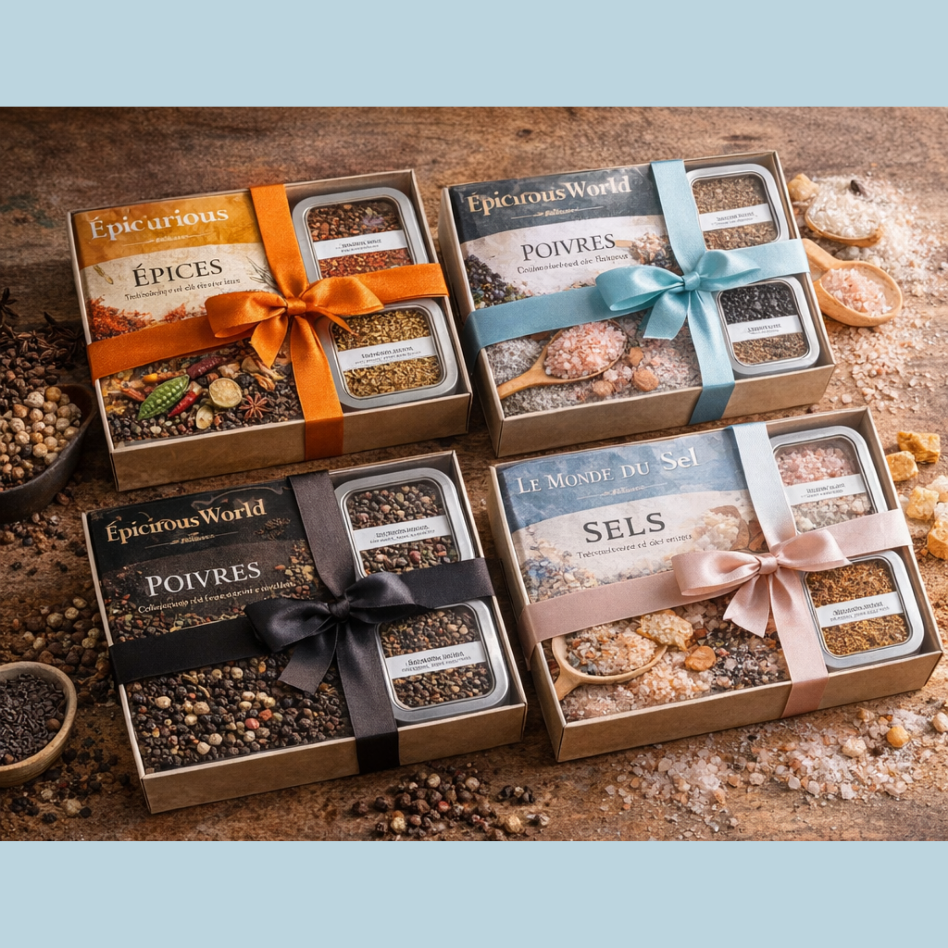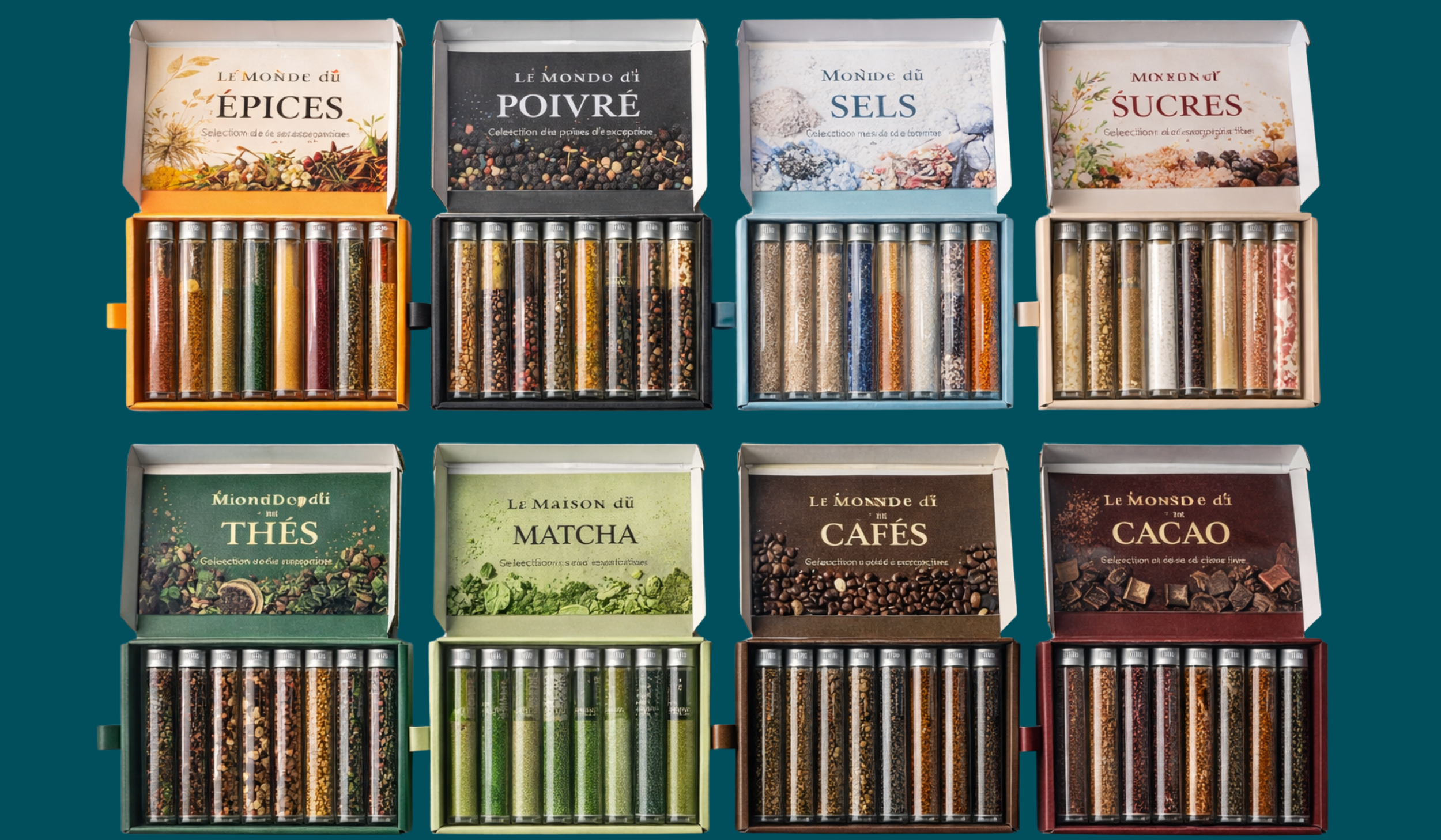 Des assortiments uniques mêlant épices, thés, sucres et trésors du monde, conçus pour surprendre et émerveiller.
